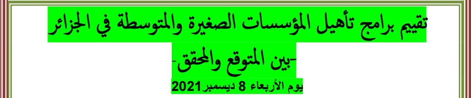 الملتقى الوطني الأول حول تقييم برامج تأهيل المؤسسات الصغيرة والمتوسطة في الجزائر- بين المتوقع والمحقق- قسم علوم التسيير، يوم الاربعاء 8 ديسمبر 2021 -