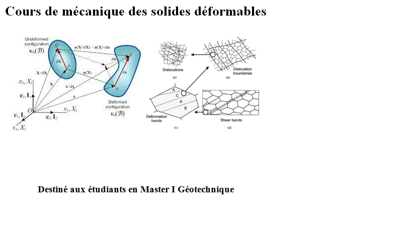 Ce cours est destiné aux étudiants intéressés par la science des matériaux et la mécanique des solides. Les lecteurs doivent avoir une compréhension de base de la physique et des mathématiques pour suivre le contenu.Ce cours vise à fournir aux étudiants une compréhension approfondie des mécanismes physiques de déformation et de rupture des matériaux, ainsi que des outils pour caractériser expérimentalement ces phénomènes. Les connaissances acquises dans ce cours serviront de base pour des études plus avancées dans le domaine des matériaux et aideront les étudiants à comprendre et à résoudre des problèmes complexes liés à la conception et à l'ingénierie des matériaux. Le cours est structuré en quatre chapitres qui abordent successivement les mécanismes physiques, la classification et les essais mécaniques, l'élasticité et la viscoélasticité, ainsi que la plasticité et la viscoplasticité.Nous espérons que ce cours fournira une compréhension approfondie des mécanismes physiques de déformation et de rupture, ainsi qu'un aperçu des techniques expérimentales utilisées pour caractériser les matériaux.