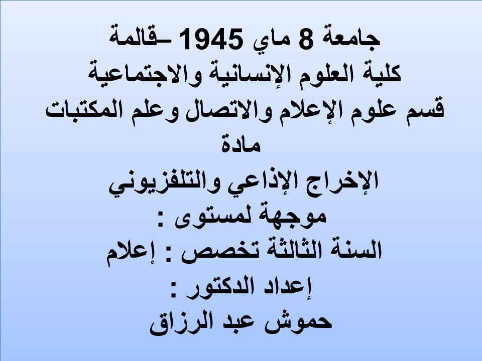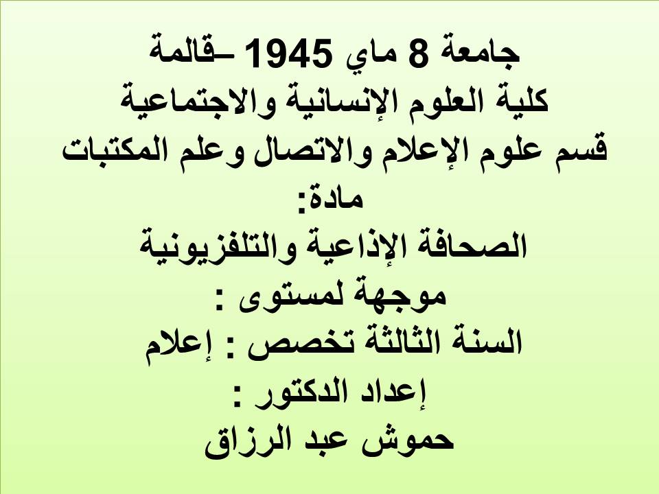 الصحافة الإذاعية والتلفزيونية هي مادة موجهة لمستوى السنة الثالثة ليسانس . تخصص: إعلام