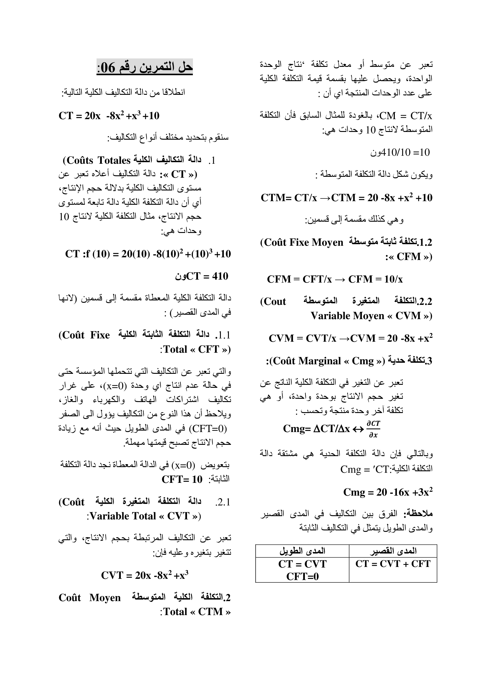 عرض حال للتمرين رقم ستة من سلساة الاعمال الموجهة الخاصة بمقياس الاقتصاد الجزئي 2 والمتعلق بالمفاهيم العامة لنظرية التكاليف