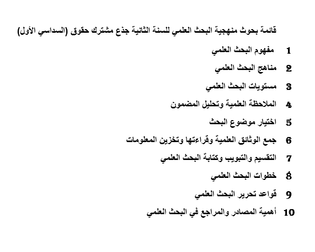 تعتبر منهجية البحث العلمي إحدى أهم المقاييس لطلاب الجامعات في مختلف التخصصات، فهي المادة التي لا يمكن الاستغناء عنها أو تجاوزها، لارتباطها الوثيق بكل المقاييس والأبحاث والبحوث العلمية والمذكرات وحتى كونها مادة أساسية في كل المسابقات ، وقد تم برمجة هذه المادة لطلبة السنة الثانية حقوق تبعا لهذه الأهمية، وإضافة للمحاضرات التي يتلقاها الطلبة وضعت حصص للأعمال الموجهة من أجل تعميق الفهم أكثر والانتقال من تحصيل العلم النظري إلى تطبيقه في مختلف البحوث المقدمة ومن خلال حصص التطبيق.