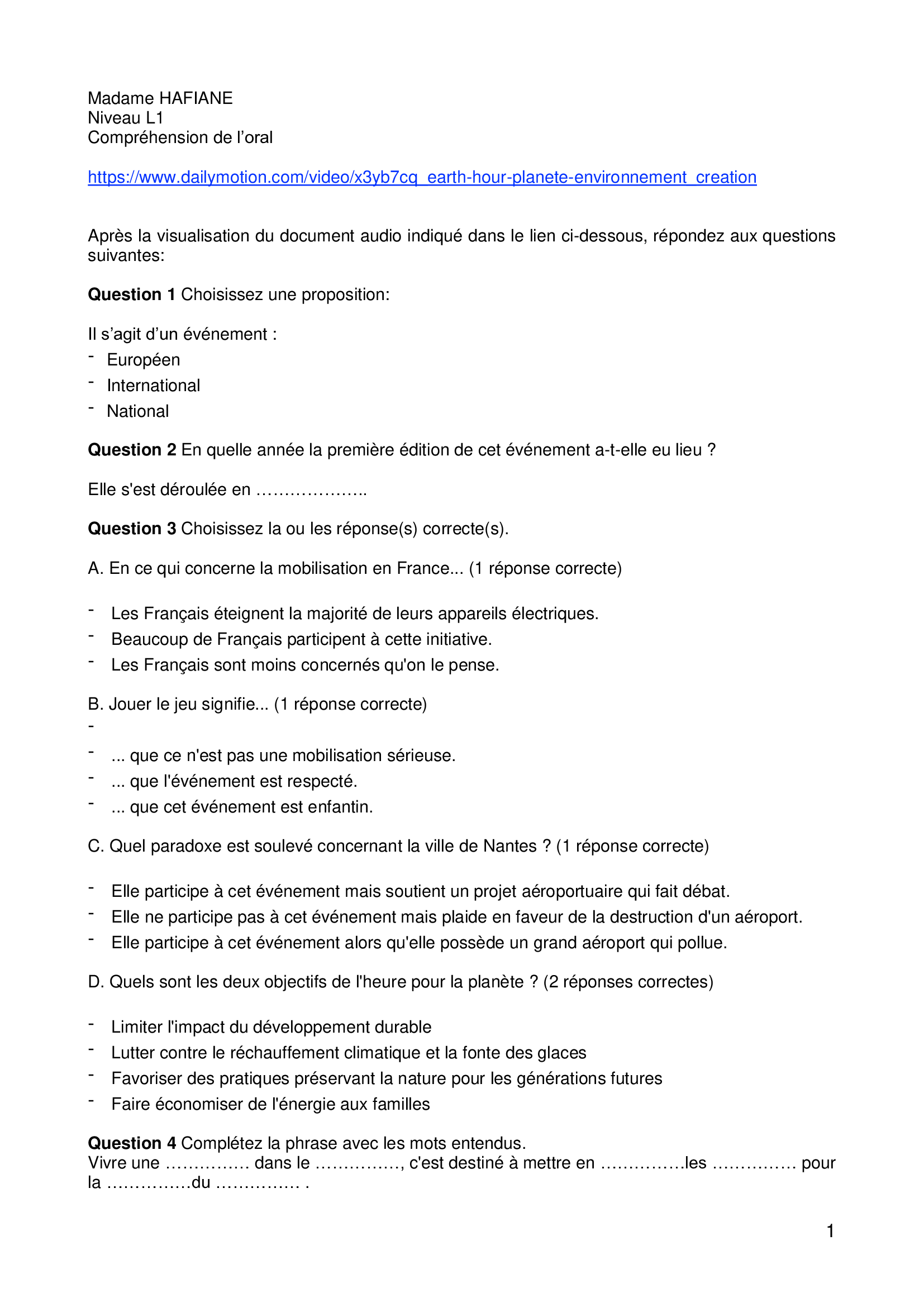 Compréhension de l'oral Planète-environnement (1)