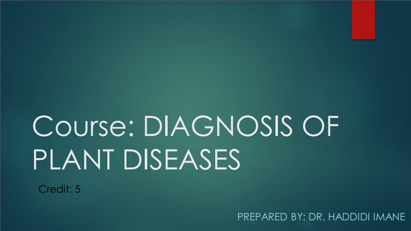 process for diagnosing diseases, incorporating hypothesis development, and diagnostic tests. The study material in this course focuses on the basic concepts of disease diagnosis, its implementation stages for various types of diseases and procedures for evaluationg disease incidence i plants.